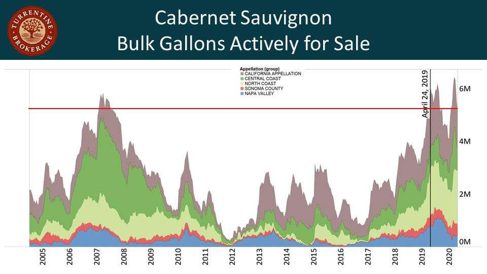 Over the last six weeks, we have seen a slowing of the market, but have not seen a dramatic increase in supply or a dramatic softening of demand on the bulk wine and grape markets. We have, however, observed more cautious buyers, and we are seeing a few smaller wineries listing bulk wine and grapes for sale. Buyers are still offering on bulk wine, and the same just-in-time inventory buyers with a purchase order in-hand are more readily able to take advantage of lower average prices in 2020.
