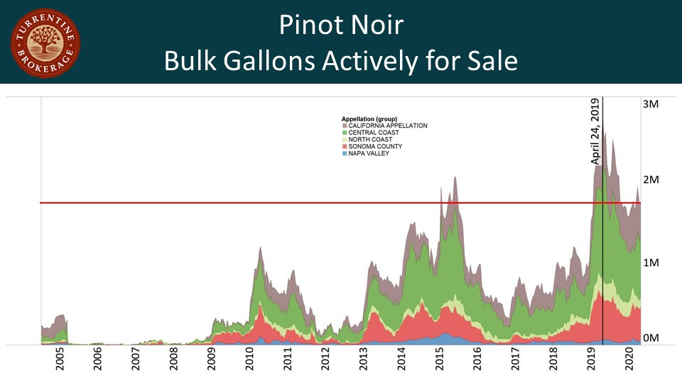 There are still large quantities of 2017, 2018 and 2019 vintage wine in the market, and it is already May with harvest fast-approaching. There could be storage concerns from sellers holding onto multiple vintages.