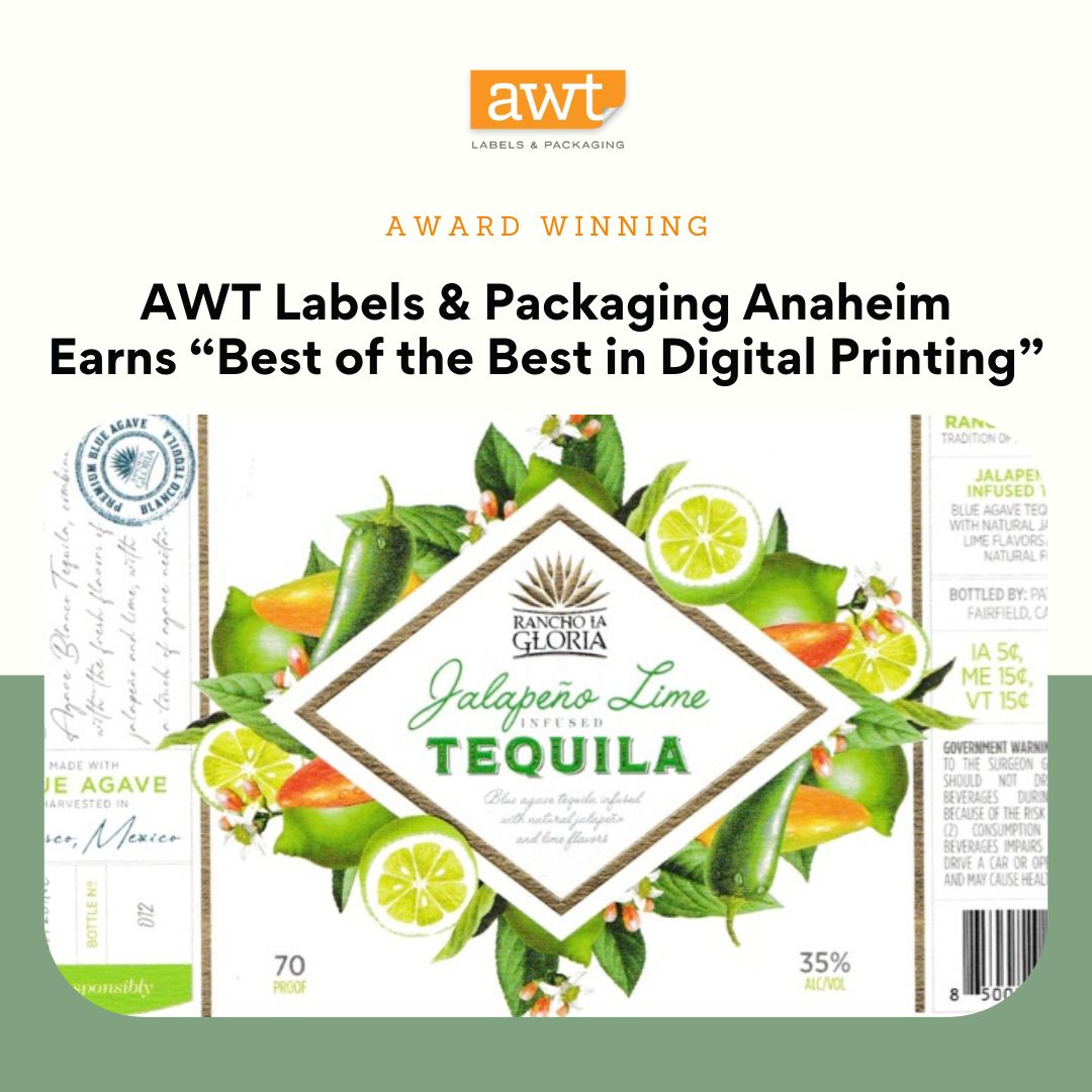 At the TLMI event, members Thomas Barrett, Michelle Zeller, Bruce Hanson, and Charlie MacLean accepted the L9 World Label Award in "Digital Printing" for the #RanchoLaGloria Jalapeño Lime Infused Tequila label.