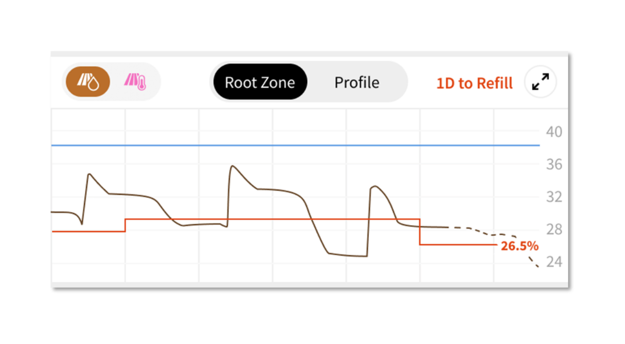 "For our Plant-Dynamic Soil Thresholds, our approach involves utilizing the data generated by our soil and plant sensors, as well as climatic data. We assess the plant's performance at the end of each day and correlate it with the soil moisture level for that day, taking into consideration the weather conditions and the water demand by the atmosphere on that particular date",