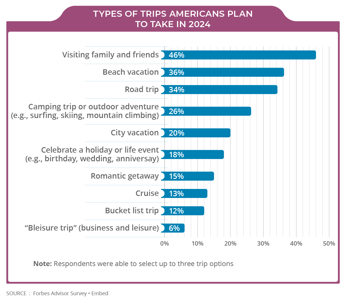 What’s on the itinerary, you ask? Well, it’s a classic lineup: family visits, beach frolics, and the timeless allure of the open road. These perennial favorites are still top contenders for 2024, proving that some things never go out of style.