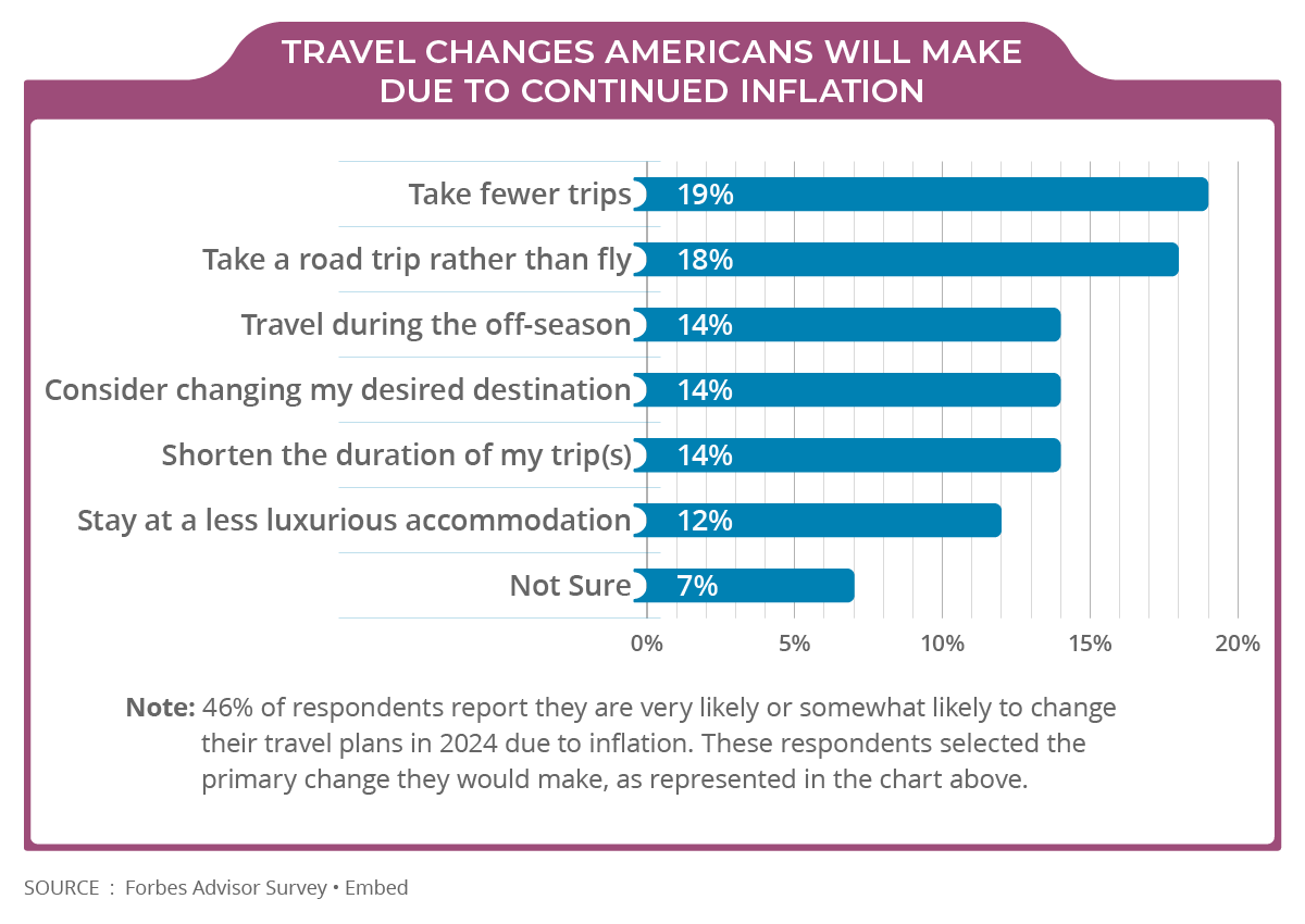 Forbes recently surveyed 1,000 Americans asking them about their travel plans this year and it seems wanderlust continues unabated into 2024, with Americans poised to jet set, road trip, and beach bum their way through the year. 52% of respondents bravely committed to maintaining the same travel tempo as the previous year, while an audacious 40% are revving their engines for even more escapades.