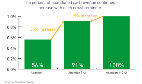 Listrak reports that abandoned cart campaigns generate an average of $1.64 of incremental revenue for every email sent, 27-times more than a typical marketing blast.