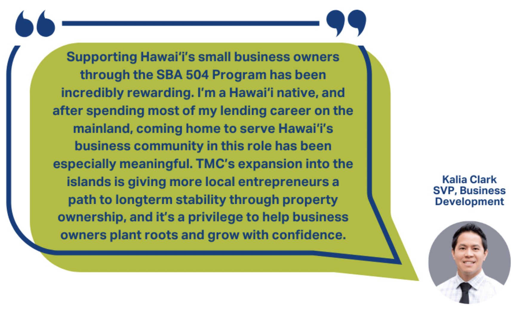 A significant contributor to this achievement is TMC’s expansion into Hawai‘i. After receiving SBA approval to lend in the islands, the organization has strengthened its presence by collaborating with local lenders, small business owners, and community groups. The addition of Senior Vice President of Business Development, Kalia Clark, a Hawai‘i native with deep SBA lending experience, has provided invaluable local insight and helped more entrepreneurs gain access to the advantages of the SBA 504 Program.