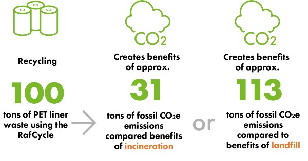 A company that recycles 100 tons of PET release liner avoids 31 tons of fossil CO2 emissions compared with incineration or 113 tons when disposed in a landfill. With over half of California’s 76 million tons of waste ending up in landfills and a recycling rate of 41%, according to CalRecycle’s latest report, there is still plenty of room to improve.