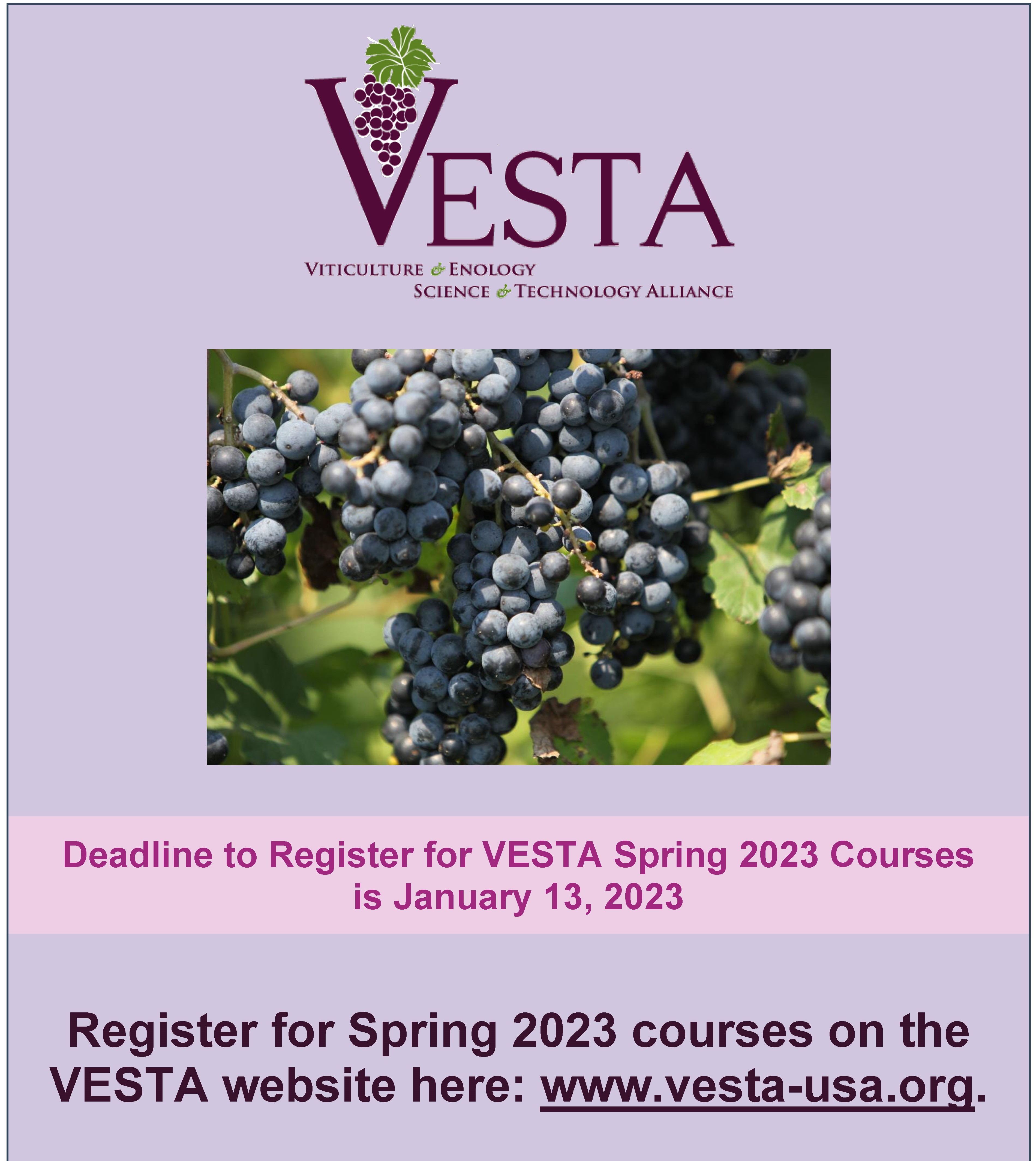 If you've been considering advancing your wine industry career through education, now is the time to act. The Viticulture and Enology Science and Technology Alliance (VESTA) program is accepting registrations for classes beginning the week of January 12, 2026.