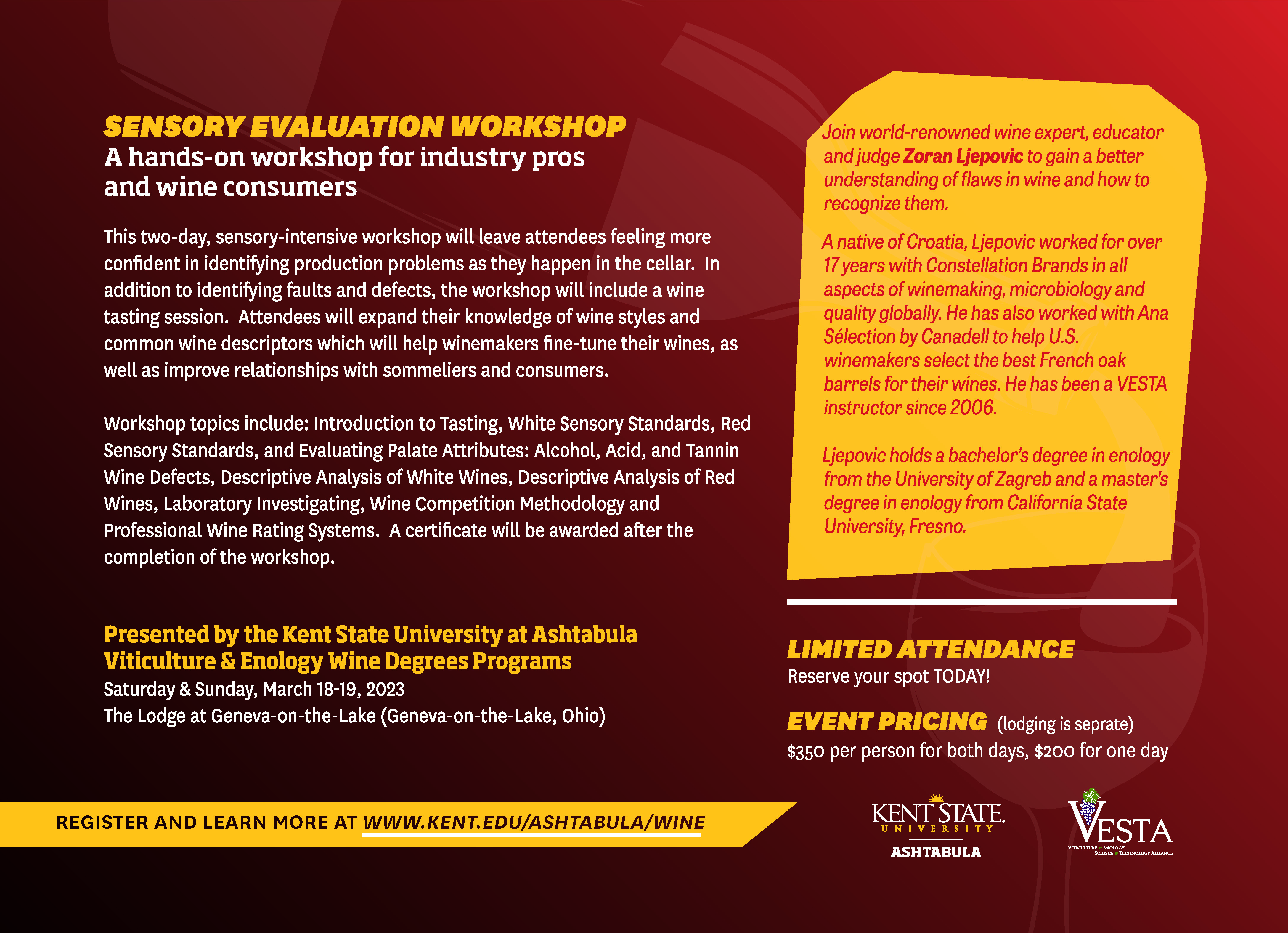 Register and Learn More at www.Kent.edu/Ashtabula/Wine