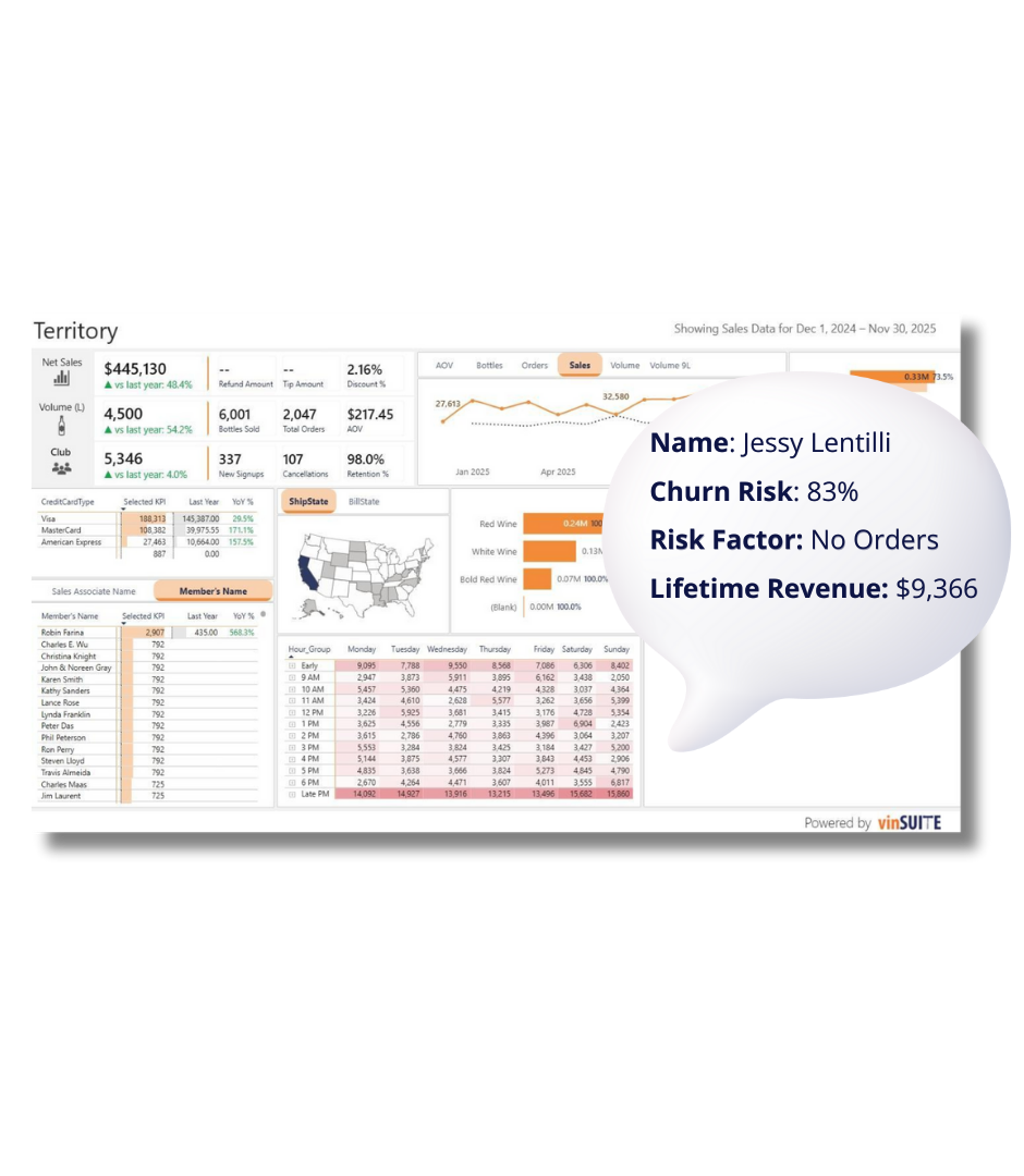 "By the time churn shows up in standard reports, that wine club revenue is already gone," said Jimmy Wu, President of vinSUITE. "vinSIGHT gives wineries the ability to see these warning signs weeks or even months earlier, providing the clarity and foresight needed to save relationships and protect revenue."
