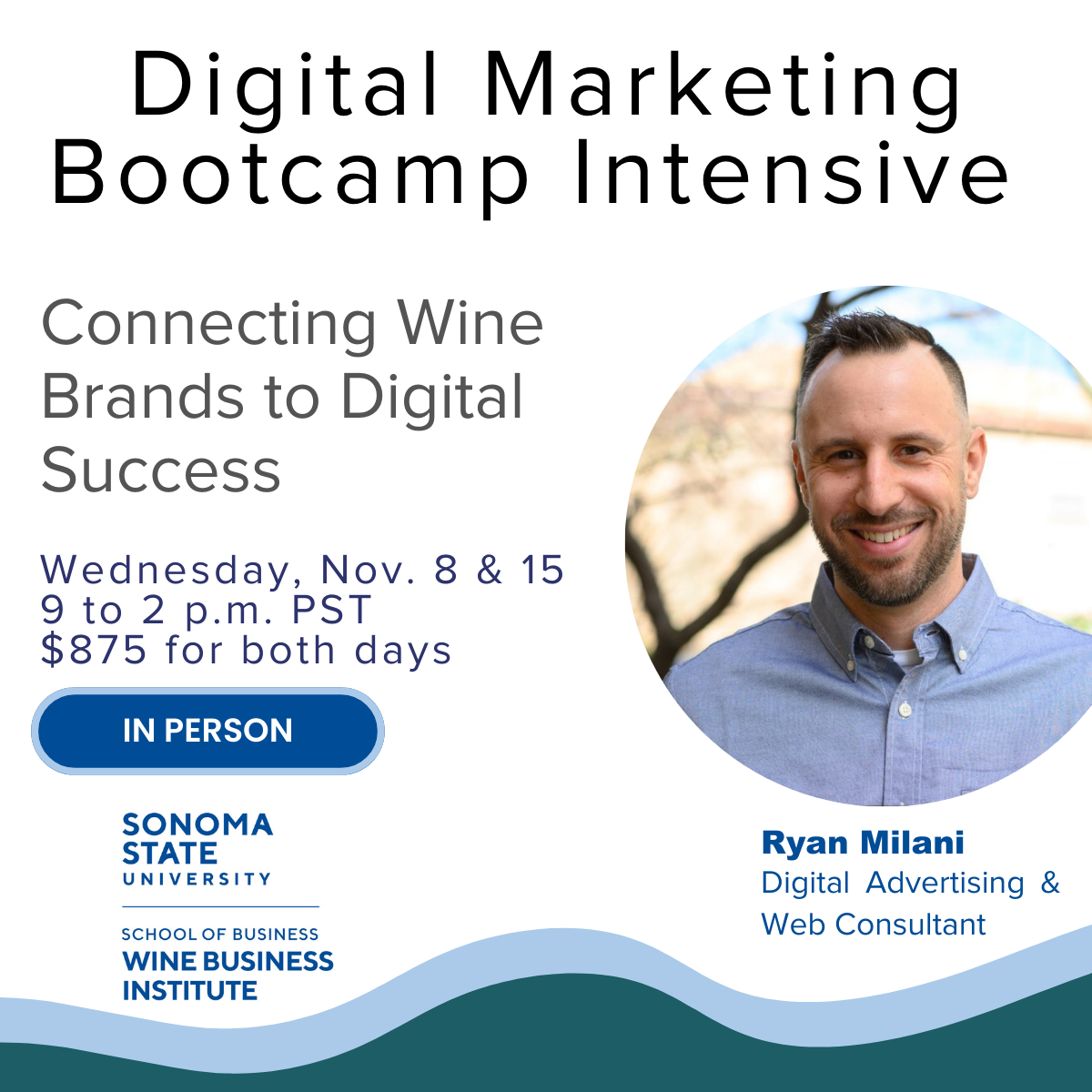 Previously taught in wine hubs like Paso Robles and New York’s Finger Lakes, this bootcamp offers hands-on training in the latest digital marketing strategies tailored for wine professionals on campus at the Wine Spectator Learning Center at Sonoma State, by the Wine Business Institute.
