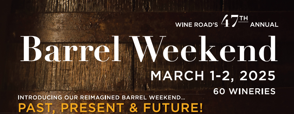 The 2025 Barrel Weekend is all about tasting wines from the past, present and future. This annual weekend event has been reimagined for its 47th anniversary, letting the wineries along the Wine Road focus on more than just tasting wines from the barrel. And, giving tasters new opportunities for exploring and learning about wine.