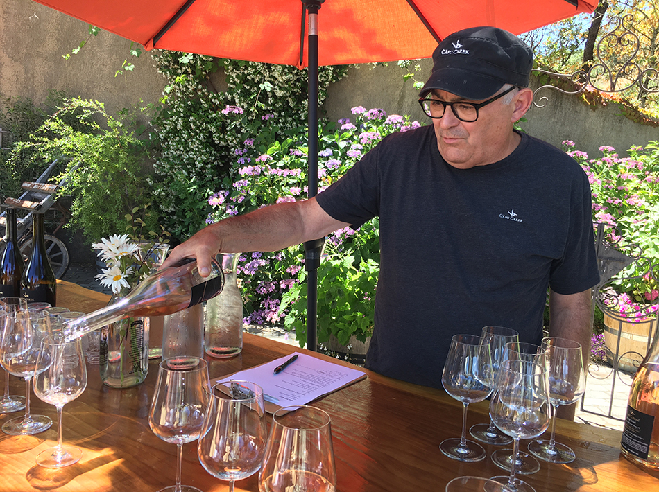 Capo Creek Winery co-owner Bob Covert pouring wine for visiting guests.Tasting the Future