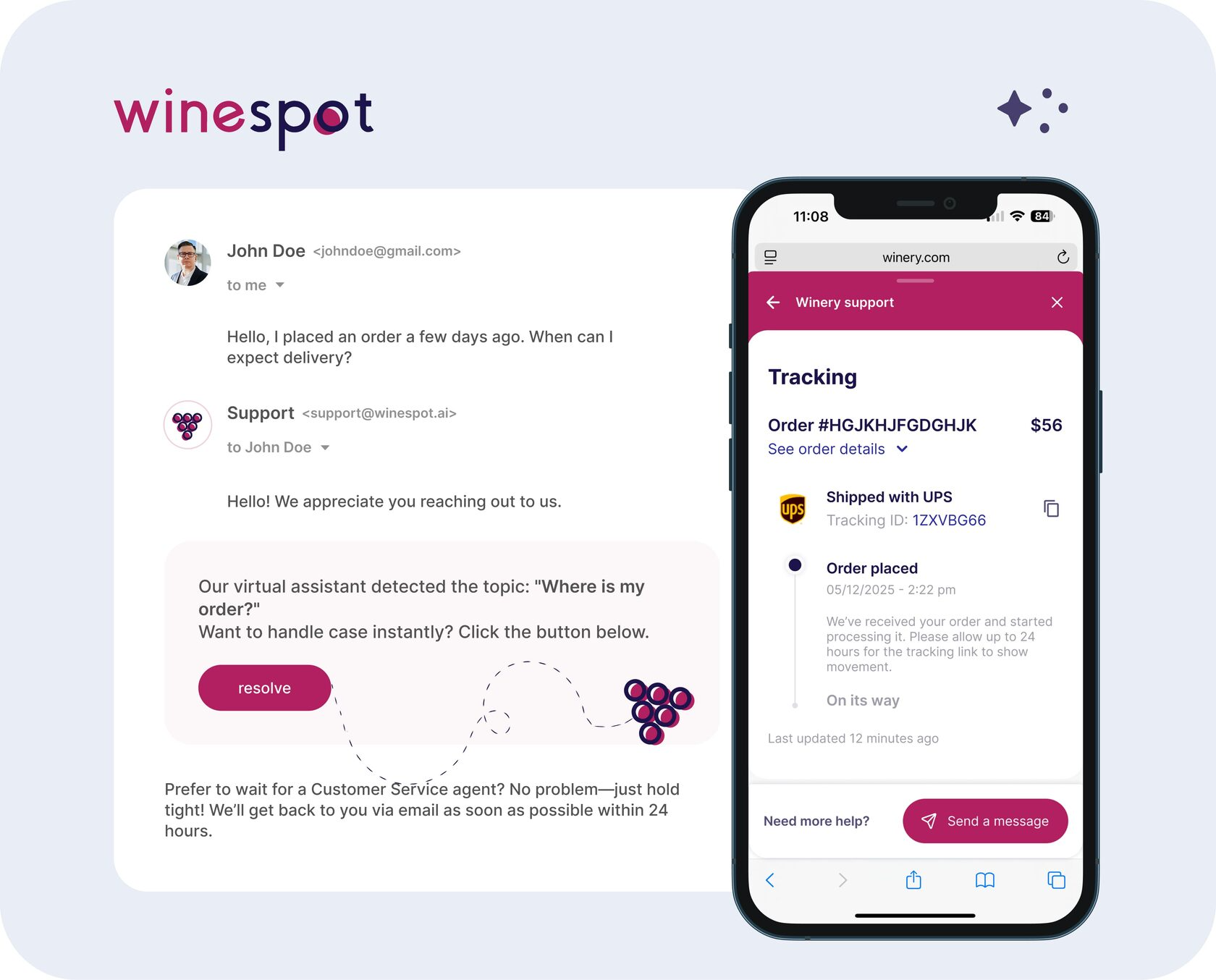 WineSpot is already able to recognize and handle over 60% of incoming customer support requests — and that number keeps growing as the system learns.