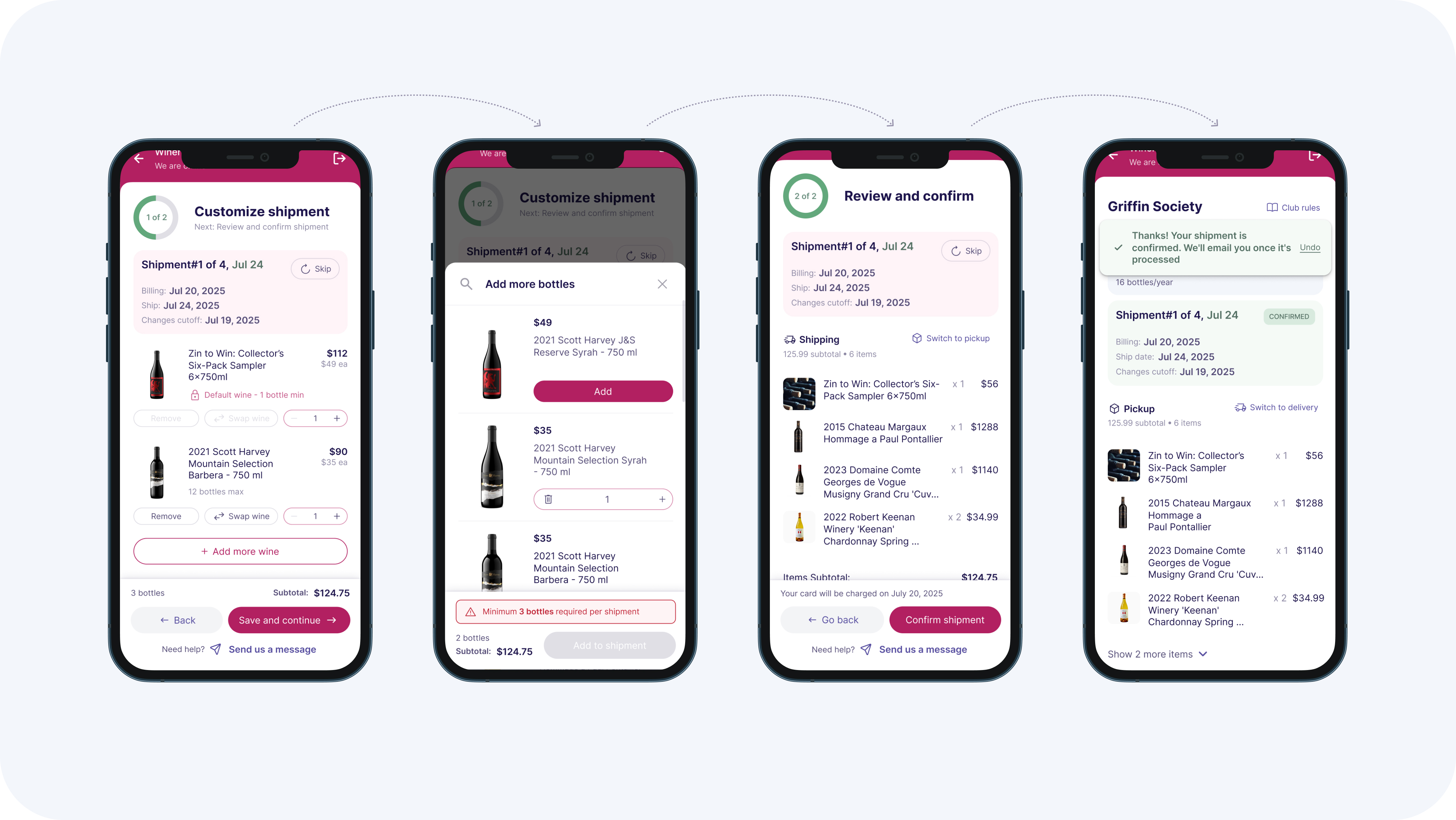 - Supports wine swaps, shipment skips, address changes, reservations, and many more