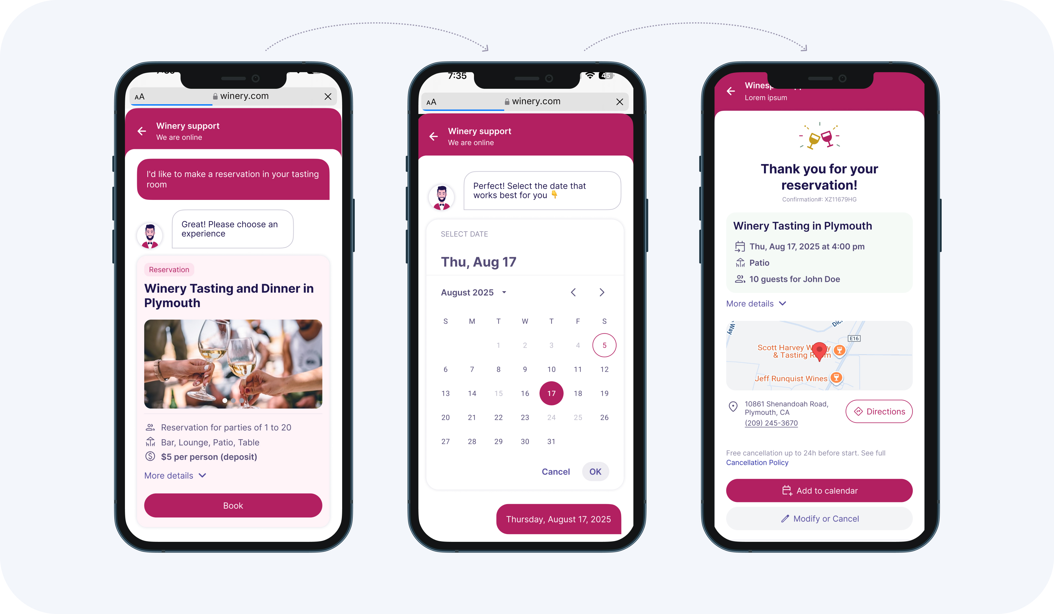 1. The member clicks a link or “resolve” button in an email, responds to an SMS prompt, or opens the winery’s chat.