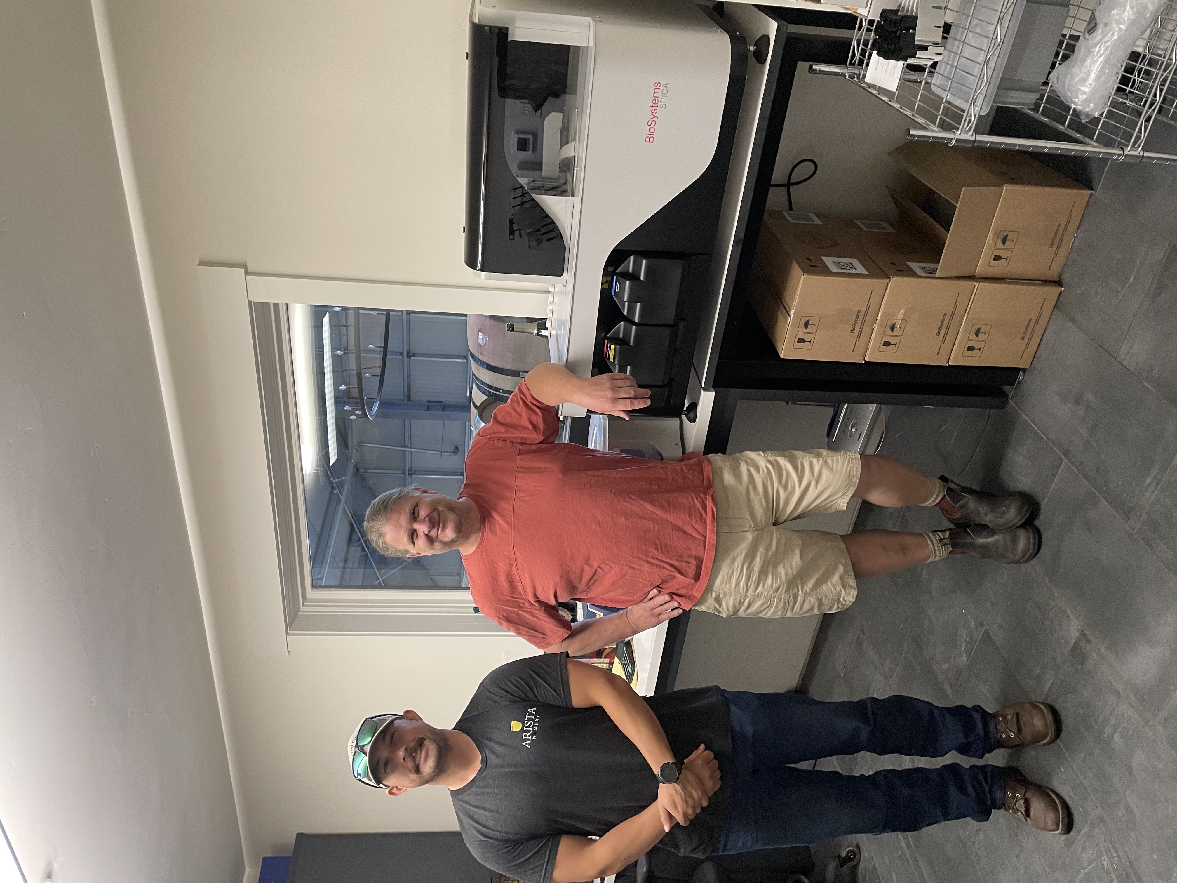 Spica ⭐️ has found a wonderful home in the lab at Arista Winery in Healdsburg, California! It was an awesome day with Ray Lyons (left) and Gordon Miller (right), implementing enzymatic and colorimetric automation. 🍷 Welcome to the SPICA ⭐️ family from all of us at Admeo!
