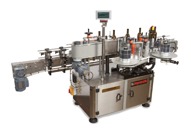 Ideal for wine, beverage, cosmetics, and food industries. FEATURES Speeds up to 70 BPM Two Body Labeling Heads Each Labeling Head Can Apply One or Two Labels with a Space Applies Full Wrap Labels Operator Interface / HMI PLC Controlled Product Library Tapered Bottle Adjustment Calibrated Mechanical...