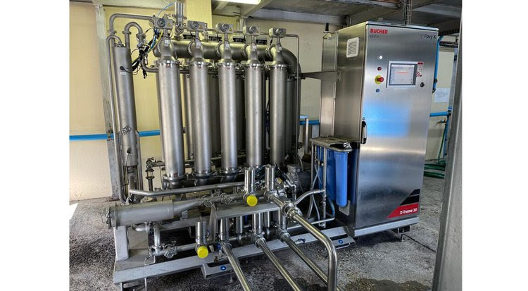 Wine filtration addresses unappealing murkiness or deposits, a process that goes back to the origin of wine. Over the centuries, the means of filtration have evolved from fabrics to industrial filters to sedimentation, filtration plates, and membranes. Conventional filtration moves the juice or wine perpendicularly through the filter. This transversal filtration leads to the accumulation or caking of microorganisms and particles that result in cloudiness on the filter, which increases hydraulic resistance and reduces output volume. Bucher Vaslin, a producer of high-end winery processing equipment sold worldwide, recently introduced the latest iteration of its cross-flow filtration machinery, the Flavy X-Treme 3-in-1. This innovative and unique machine allows winemakers to filter wine, juice lees, and wine lees in a single machine. Additionally, it recovers a significant portion of previously wasted lees, increasing the quantity of saleable wine. Utilizing these recovered lees, cross-