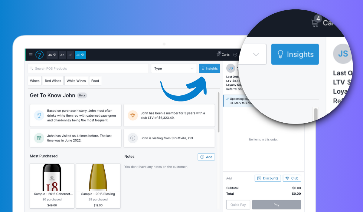 Know Your Customers. Sell More Wine. Your POS should do more than process transactions — it should help you sell. With Commerce7, every tasting room interaction becomes a personalized experience that drives higher sales. Wineries using personalized online shopping pages on Commerce7 see nearly 6x...