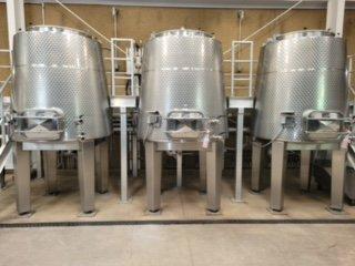 Item #s: B000703 - 705 Flat sloped bottom Stainless steel legs (attached) 2” Tri Clover fittings Bottom manway: 16” x 20” rectangular outswing 39” Top manway 2” TRC Racking and 2” total discharge valve 4’ Diameter (Top inside of tank) 5” Diameter (Bottom inside of tank) 5’5” Diameter (Bottom...