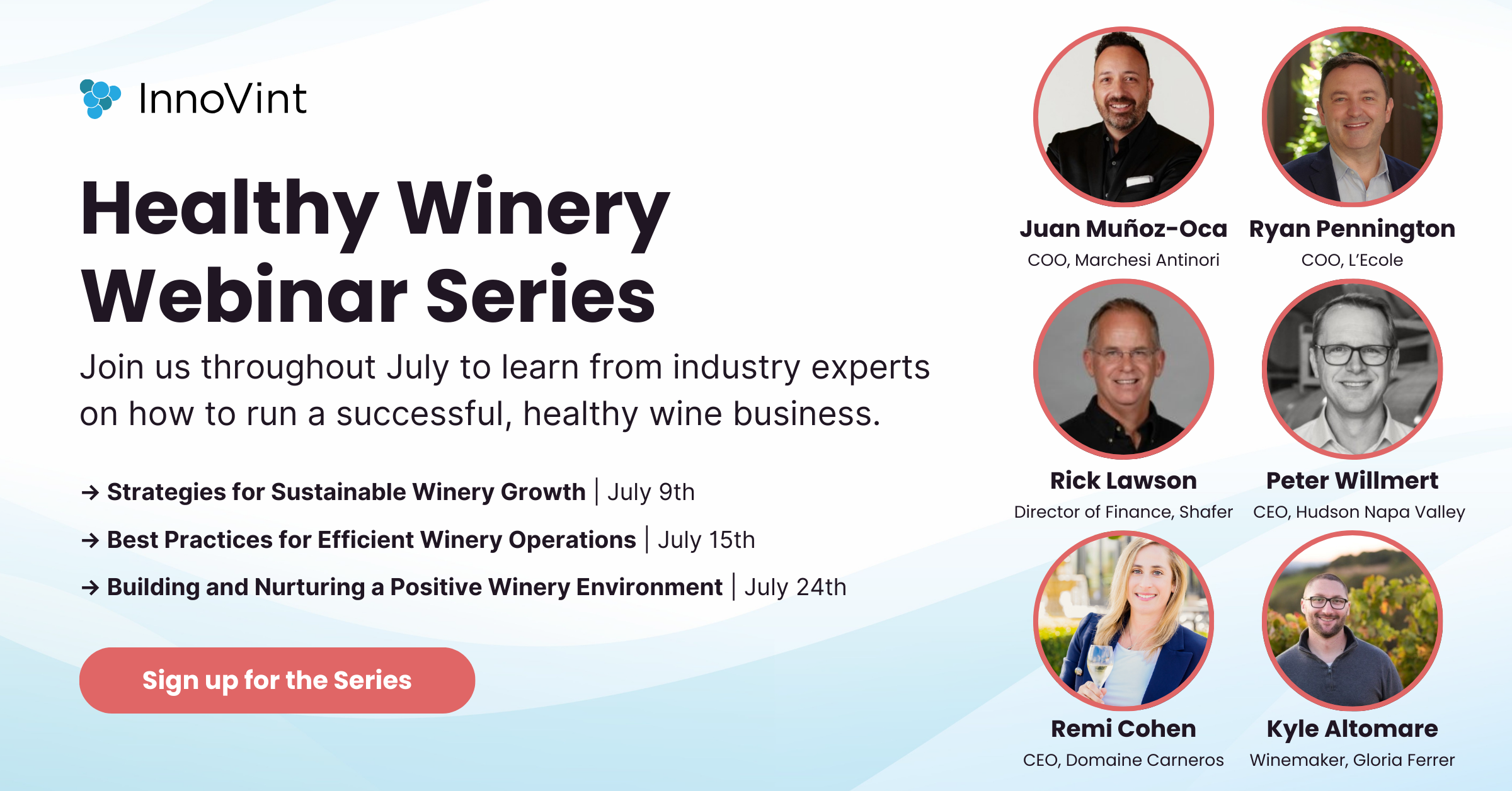 Throughout July, InnoVint is bringing together top winery CEOs, COOs, finance leaders, and winemakers to share their secrets to running a successful, healthy wine business. The Healthy Winery Webinar Series consists of three events, each dedicated to exploring a critical dimension of winery health:...
