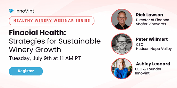 On July 9th, join Peter Willmert (CEO, Hudson Napa Valley), Rick Lawson (Director of Finance, Shafer Vineyards), and Ashley Leonard (CEO, InnoVint) to discuss best practices for running a financially healthy wine business. Register to save your spot! Register to save your spot!