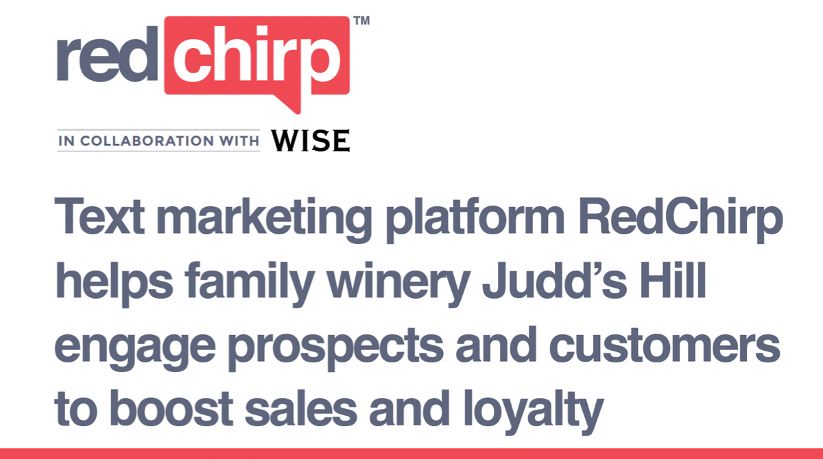 Text marketing platform RedChirp helps family winery Judd’s Hill engage prospects and customers to boost sales and loyalty. Text messaging delivers unrivaled immediacy, engagement, scalability, and results. Family-owned Judd’s Hill Winery has been making wine in Napa Valley for two generations,...