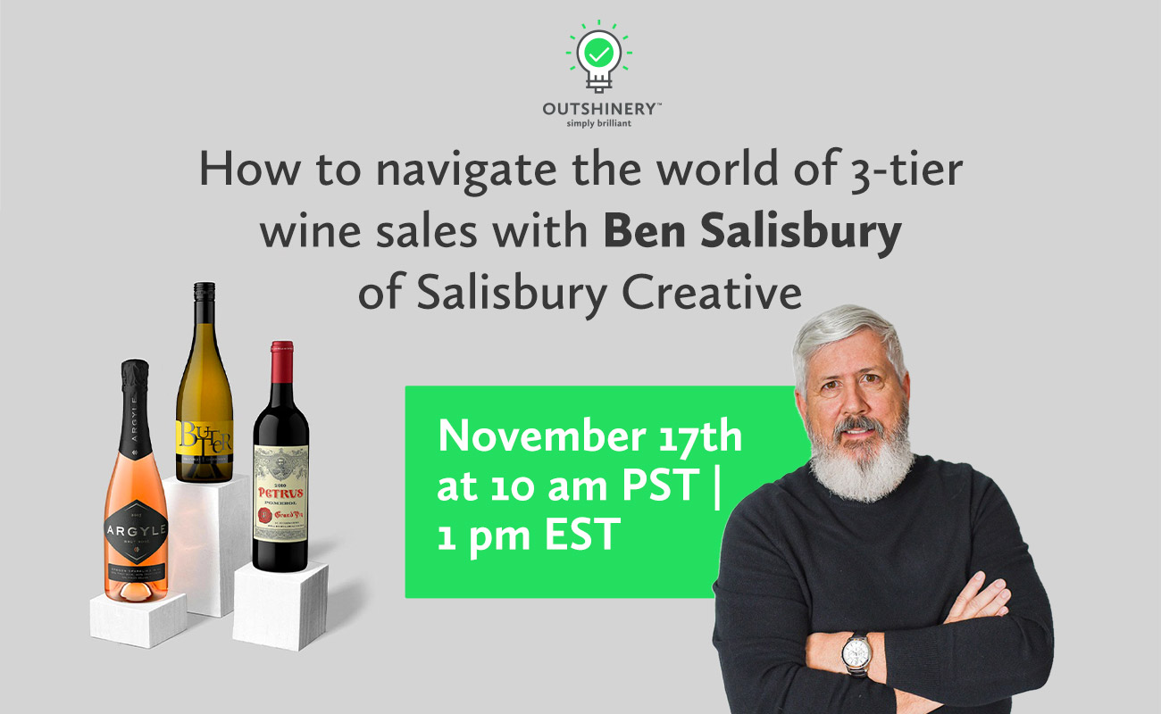 Save your seat for a free workshop for Outshinery clients, featuring Ben Salisbury of Salisbury Creative. How to navigate the world of 3-tier wine sales. November 17, 2021 10am Pacific | 1pm Eastern In this live webinar, Ben will walk attendees through the three options available to all wine...