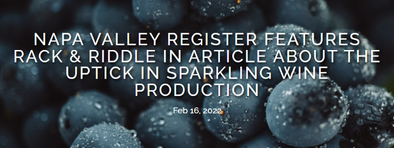 We’re excited to be featured in the February 10, 2022 Napa Valley Register article, titled, “Sparkling Wine: Why Bubbles? Why now?” Journalist Bob Ecker interviewed several regional wineries to discuss how and why they’ve delved into the sparkling wine segment to boost sales and offerings. Rack &...