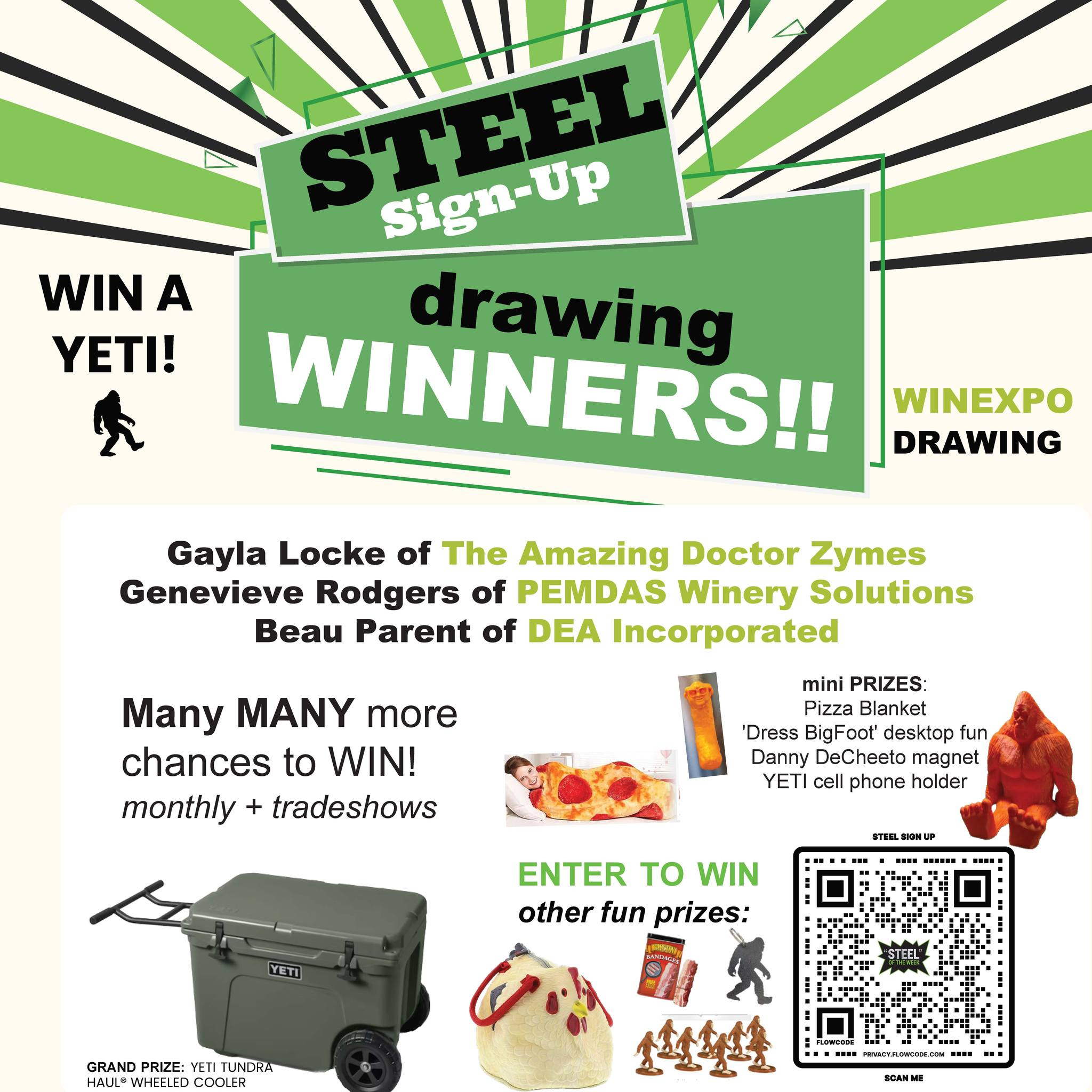 Congratulations to Genevieve of Pemdas Winery Solutions; Gayla of The Amazing Doctor Zymes and many many others. Mini prizes - such as a Danny DeCheeto magnet, a Pizza Blanket, Dress BigFoot playset, Bigfoot keychains, etc. were awarded. All mini-prize winners are of course eligible for the Grand...
