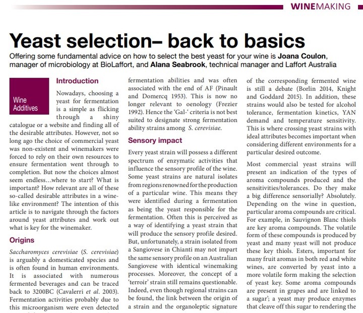 After introducing our non-Saccharomyces yeasts recently, we’d love to talk Saccharomyces yeast options for fermentation. In the technical paper titled “Yeast selection–Back to Basics”. Joana Coulon (Manager of Microbiology at BioLaffort), and Alana Seabrook (Technical Manager at Laffort Australia)...