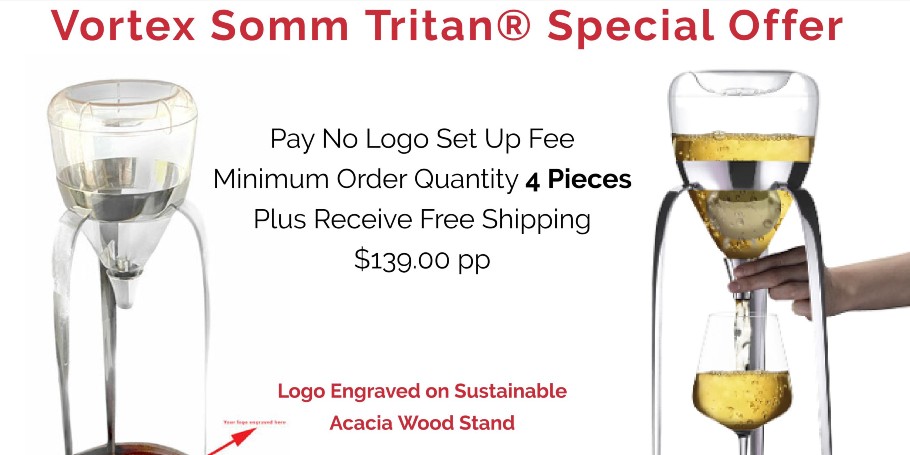 Feeling the chill in the air and seeing the color on the vines, TopNest Designs is anticipating the Holiday season by offering the following September specials on both of our Vortex Aerating Wine Dispensers - available with Tritan® or Borosilicate Glass rain filter. Free logo set-up fee...