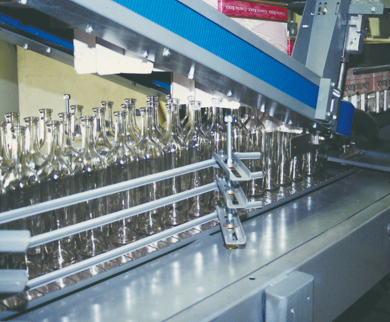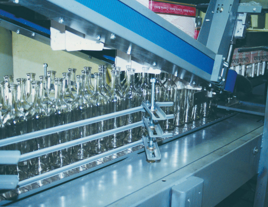 Wineries who receive their bottles in necks down reshipper cases can automate their hand dumping operation, reduce costs, increase line speeds, and ensure a consistent bottle supply to their filler withA-B-C’s Model 49 decaser. The Model 49 accepts cases from the conveyor either back-to-back or spaced, unloads and single files the bottles, and uprights the empty cases for transfer to case packing. Bottles glide from the case to the impact-absorbing transfer belt and bottle contact is minimized with A-B-C’s unique single filing module.These features work to maintain bottle stability and protect the glass integrity. By replacing the hand dumping operation, the decaser eliminates the related risk of employee injury from repeated lifting and emptying of heavy cases. The Model 49 has special features to accommodate case size variations, including a soft roller system that utilizes an automatic tensioner to ensure smooth case transit throughout decasing. The 180- degree case tu