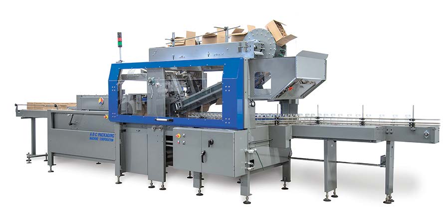 Wineries who receive their bottles in necks down reshipper cases can automate their hand dumping operation, reduce costs, increase line speeds, and ensure a consistent bottle supply to their filler with A-B-C’s Model 49 decaser. The Model 49 accepts cases from the conveyor either back-to-back or spaced, unloads and single files the bottles, and uprights the empty cases for transfer to case packing. Bottles glide from the case to the impact-absorbing transfer belt and bottle contact is minimized with A-B-C’s unique single filing module.These features work to maintain bottle stability and protect the glass integrity. By replacing the hand dumping operation, the decaser eliminates the related risk of employee injury from repeated lifting and emptying of heavy cases. The Model 49 has special features to accommodate case size variations, including a soft roller system that utilizes an automatic tensioner to ensure smooth case transit throughout decasing. The 180- degree case tu