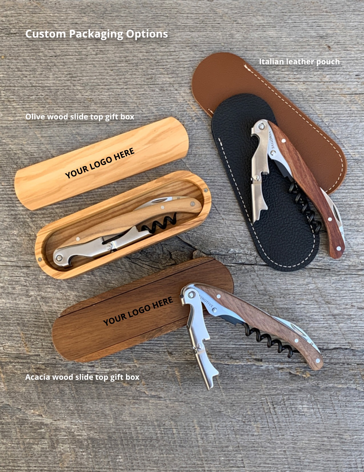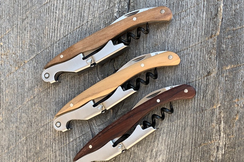 Vincere: Professional quality wood & stainless steel waiter style corkscrew The Vincere corkscrew's wooden handle gives it the strength and durability it needs for everyday use. A built-in retractable stainless steel serrated blade knife effortlessly cuts through the foil, while a non-stick coated...
