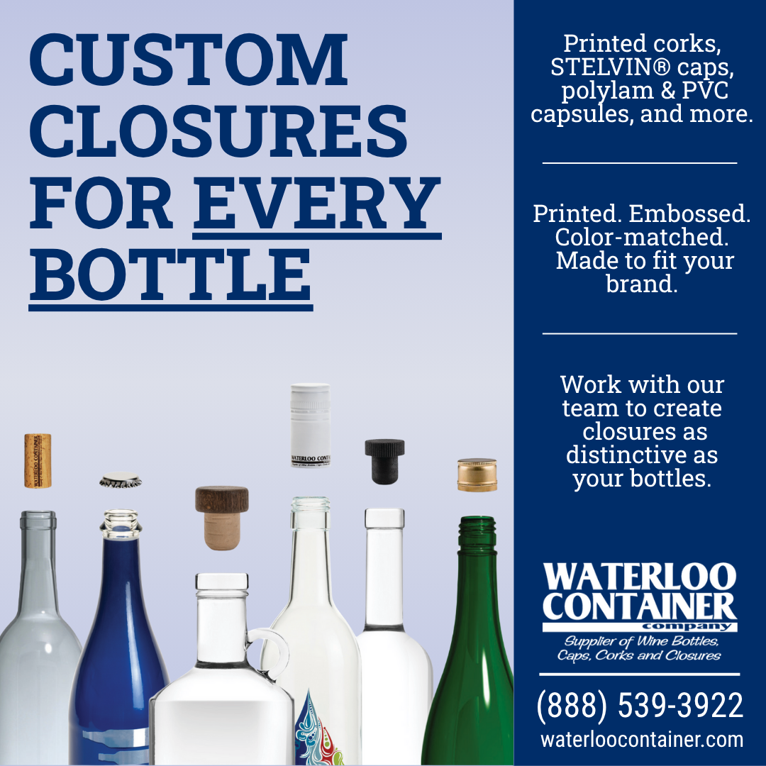 Your closure is more than a seal: it’s a branding opportunity. At Waterloo Container, we offer a wide range of custom closure solutions including printed corks, embossed screw caps, polylaminate capsules, PVC sleeves, and more. Our team works with you to ensure every detail is aligned with your...