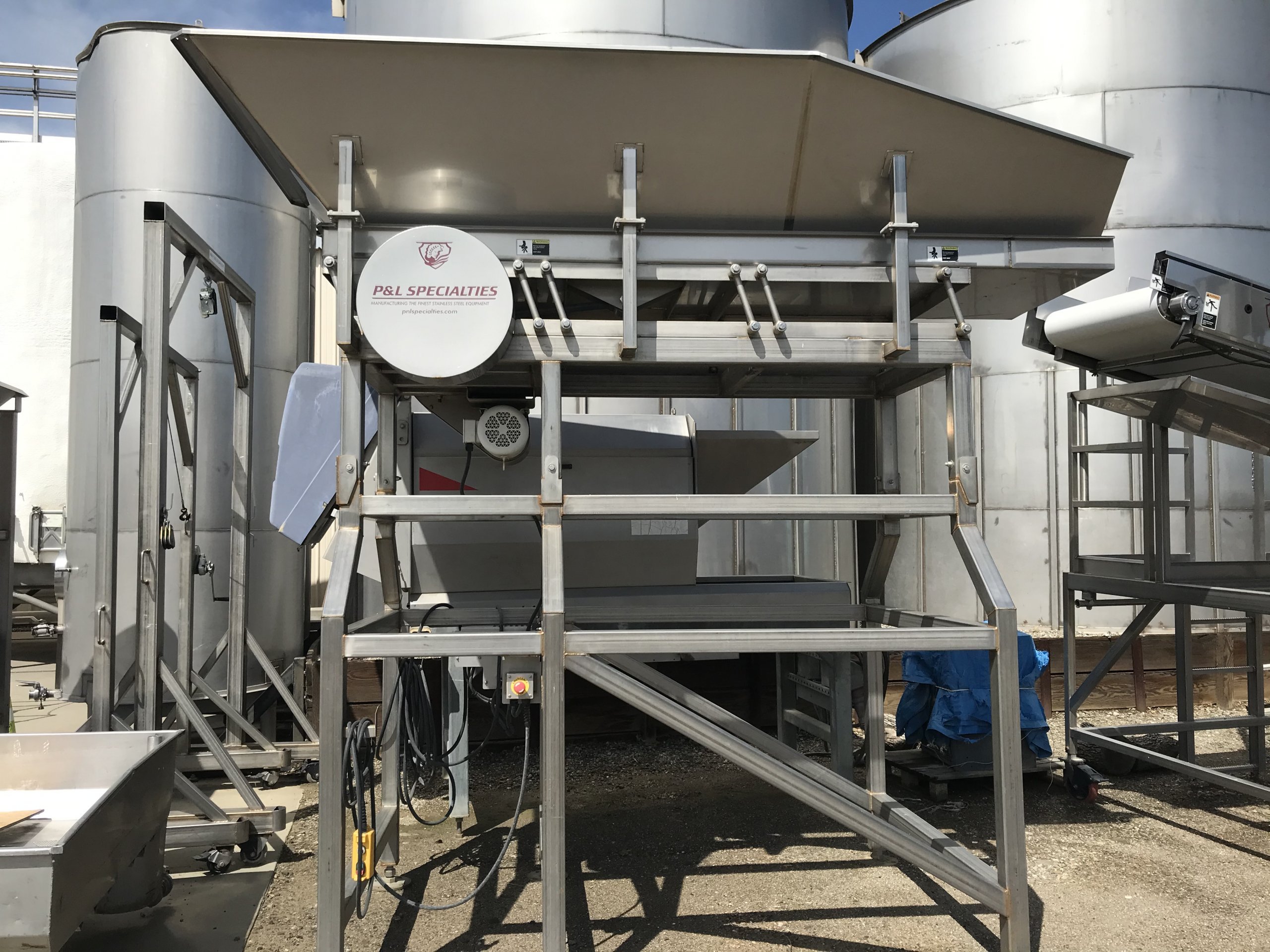 P&L Specialties' Cluster Thruster Item # B000580 The answer for macro bin processor seeking high quality output and higher speeds. Processes 2- 30 tons/hour in a gently and efficient, evenly metered flow of whole clusters, no auger needed. Serial #: 215159A Year: 2015 See complete information here....