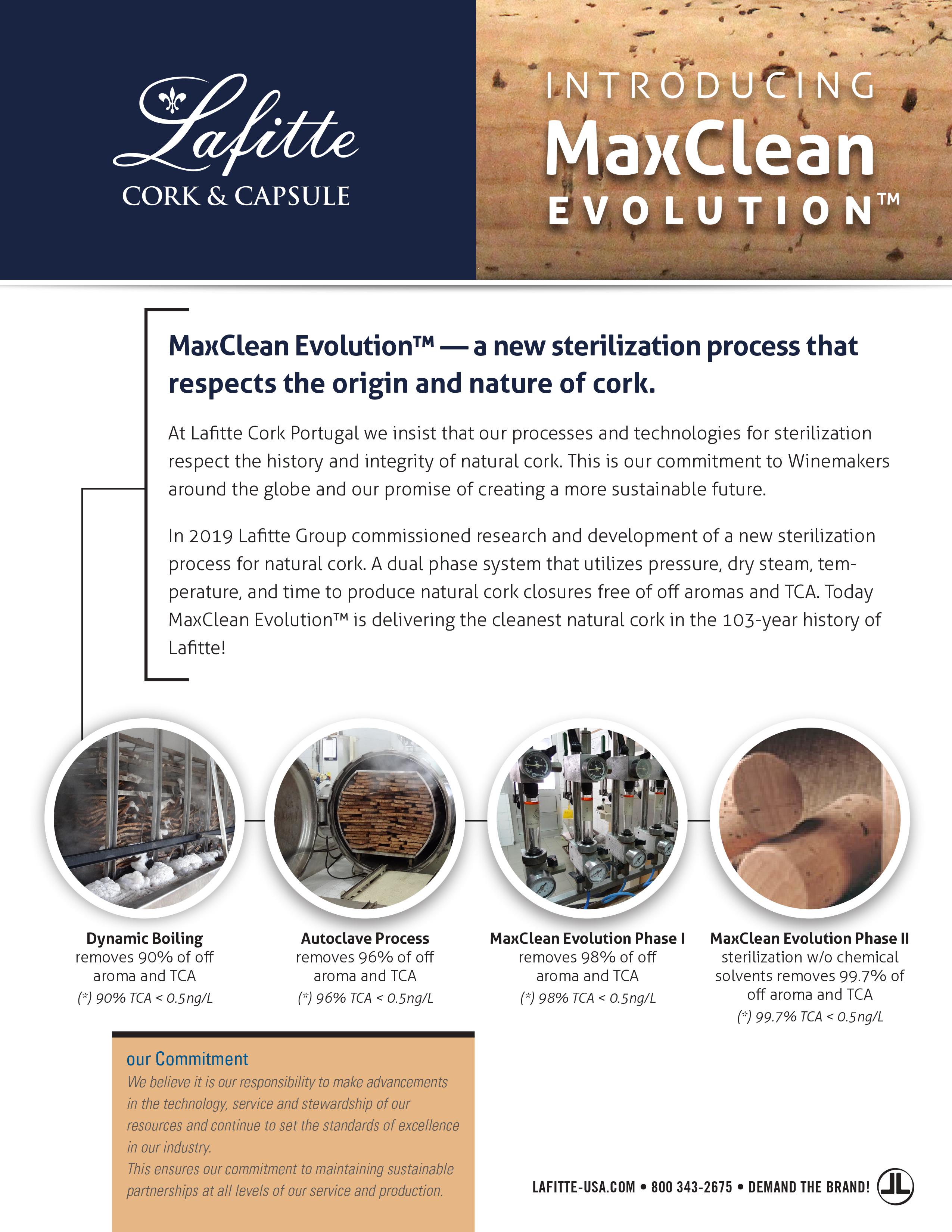 You can’t solve a problem on the same level that it was created. You have to rise above it to the next level. -Albert Einstein With the introduction of MaxClean EvolutionTM, Lafitte Cork Portugal has done just that. Natural cork closures from Lafitte undergo four levels of cork sterilization...
